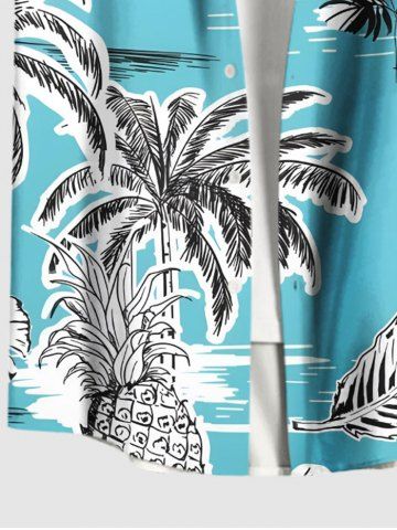Chemise Imprimé Cocotier et Feuilles Tropicales à Boutons Grande Taille avec Poche - Bleu Clair - Bleu Clair