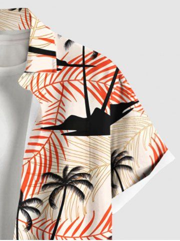 Chemise à Manches Courts> Chemise Imprimé Cocotier et Feuilles Tropicales à Poches Grande Taille pour Homme