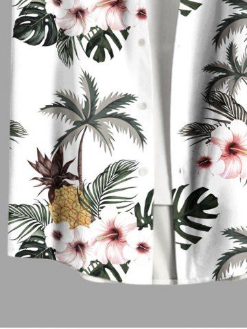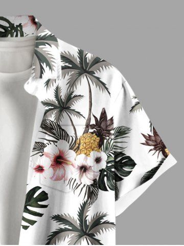 Chemise Imprimé Cocotier et Fleurs avec Poches Grande Taille pour Homme - Blanc - Blanc