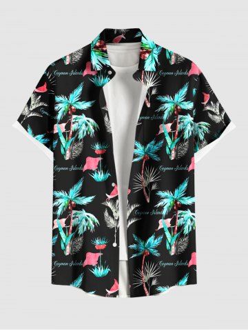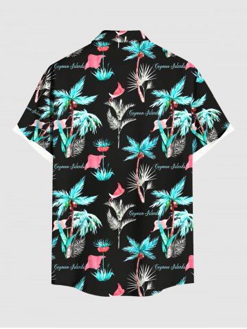 Chemise Imprimé Cocotier et Oiseaux à Boutons Grande Taille avec Poche pour Homme - Noir - Noir