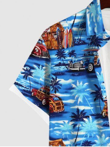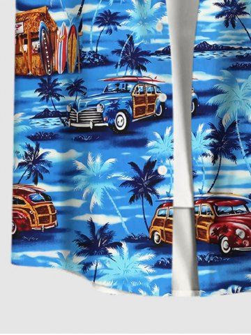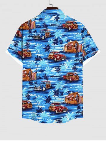 Chemise Imprimé Cocotier et Voiture à Boutons Grande Taille avec Poche pour Homme - Bleu - Bleu