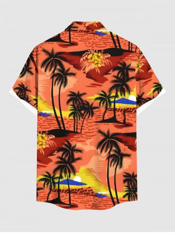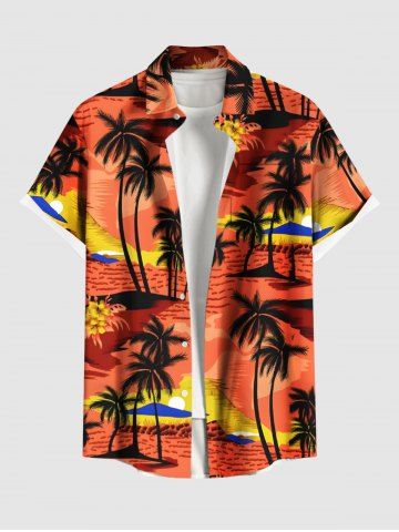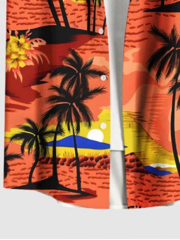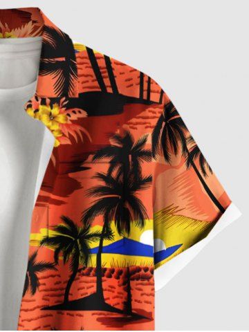 Chemise Imprimé Cocotier Fleurie Grande Taille avec Poche de Plage pour Homme - Orange Foncé - Xl