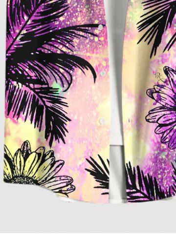 Chemise Imprimé Cocotier Floral à Feuilles Grande Taille avec Pochette pour Homme - Pourpre - Pourpre