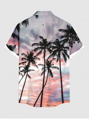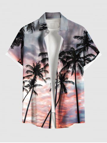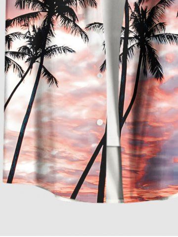 Chemise Imprimé Cocotier Grande Taille avec Poche Kangourou - Rose Clair - Rose Léger