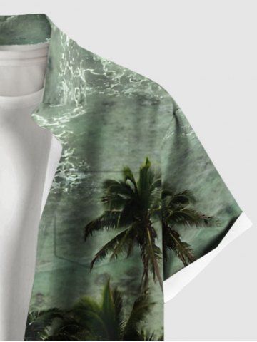 Chemise Imprimé Cocotier Hawaiien avec Poches à Boutons Grande Taille pour Homme - Vert - Vert