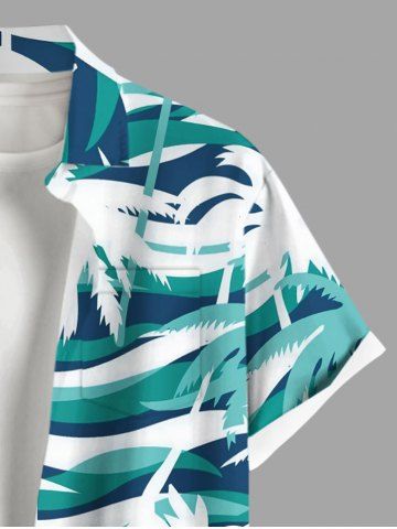 Chemise Imprimé Cocotier Hawaiien avec Poches Grande Taille pour Homme - Vert Clair - Vert Clair