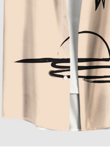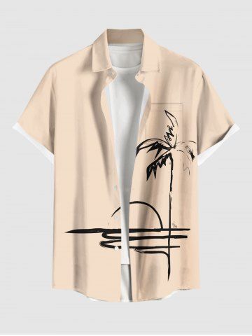 Chemise Imprimé Cocotier Peint à la Main Grande Taille avec Poche - Café Lumière - 2xl