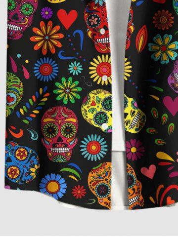 Chemise à Manches Courts> Chemise Imprimé Coeur Floral et Crâne Grande Taille avec Poches à Boutons pour Homme