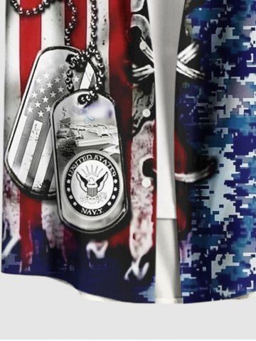 Chemise Imprimé Drapeau Américain 3D avec Poches à Lacets Grande Taille pour Homme - Bleu Profond - Xl