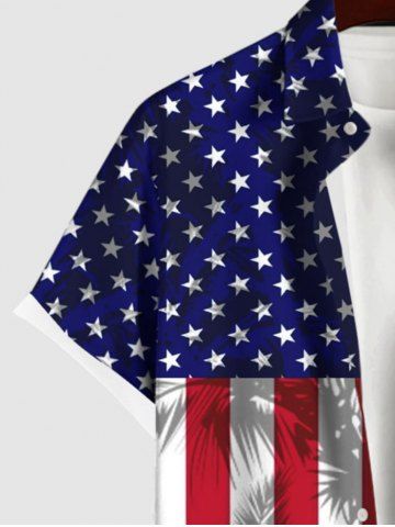 Chemise Imprimé Drapeau Américain Hawaiien à Boutons Grande Taille avec Poches - Multi-a - S