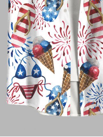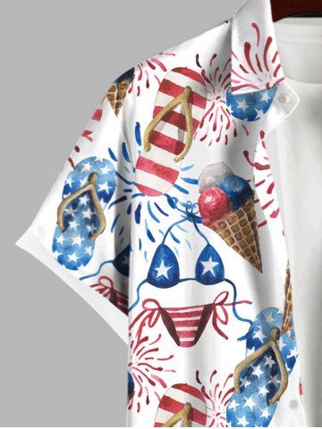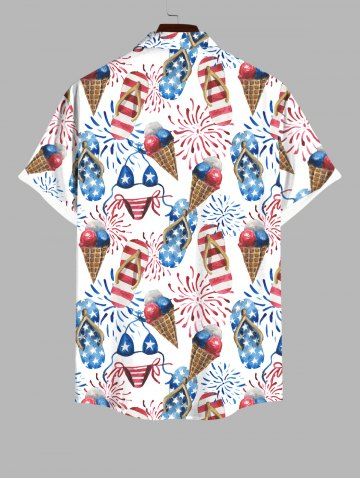 Chemise Imprimé Feu D'Artifice à Col Rabattu avec Poche et Boutons Grande Taille pour Homme - Blanc - Blanc