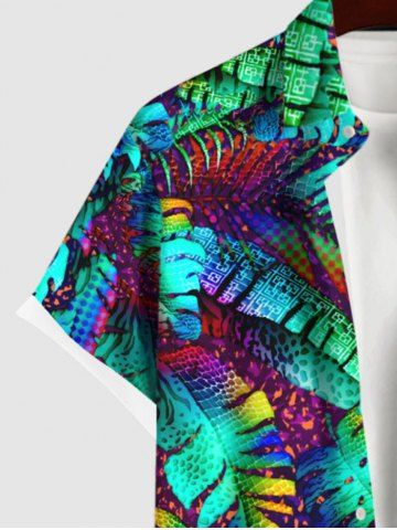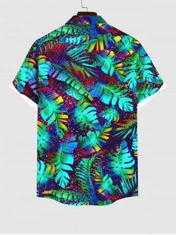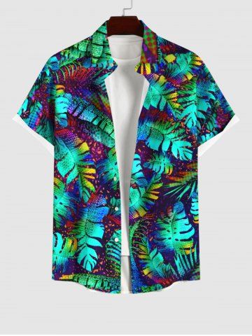 Chemise à Manches Courts> Chemise Imprimé Feuilles de Palmier Colorées à Boutons Grande Taille avec Poche pour Homme