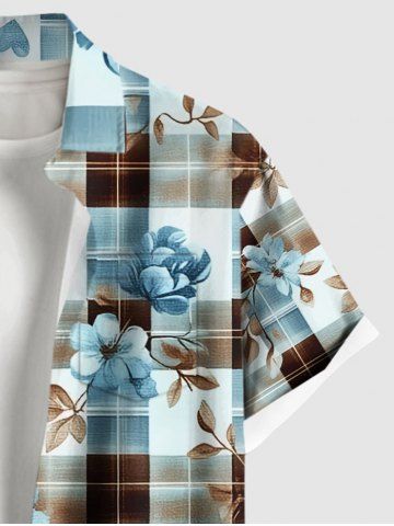 Chemise à Manches Courts> Chemise Imprimé Feuilles et Fleurs à Carreaux avec Pochette Grande Taille pour Homme