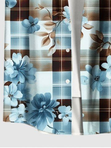 Chemise Imprimé Feuilles et Fleurs à Carreaux avec Pochette Grande Taille pour Homme - Bleu - Bleu