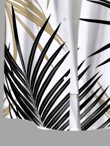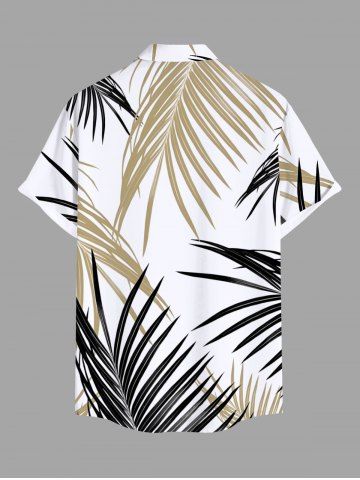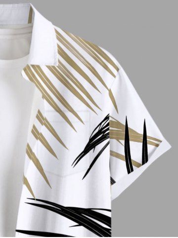 Chemise Imprimé Feuilles Tropicales à Boutons Grande Taille avec Poche pour Homme - Blanc - Blanc