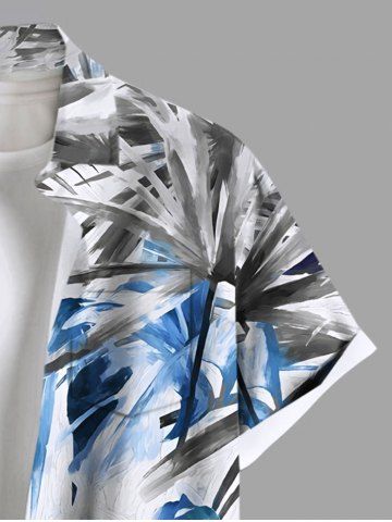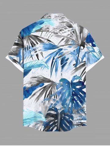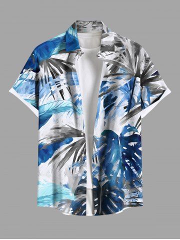 Chemise Imprimé Feuilles Tropicales à Boutons Grande Taille avec Poche pour Homme - Bleu - Bleu