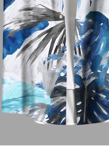 Chemise Imprimé Feuilles Tropicales à Boutons Grande Taille avec Poche pour Homme - Bleu - Bleu