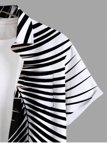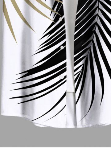 Chemise Imprimé Feuilles Tropicales à Boutons Grande Taille avec Poche pour Homme - Blanc - Blanc