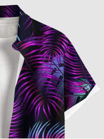 Chemise à Manches Courts> Chemise Imprimé Feuilles Tropicales Colorées à Boutons Grande Taille avec Poche pour Homme