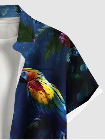 Chemise à Manches Courts> Chemise Imprimé Fleurs et Perroquet à Boutons Grande Taille avec Poche pour Homme