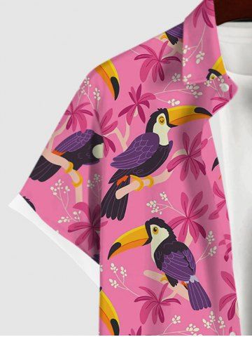 Chemise Imprimé Hawaiien Floral à Col Rabattu à Boutons Grande Taille pour Homme - Rose Clair - Rose Léger