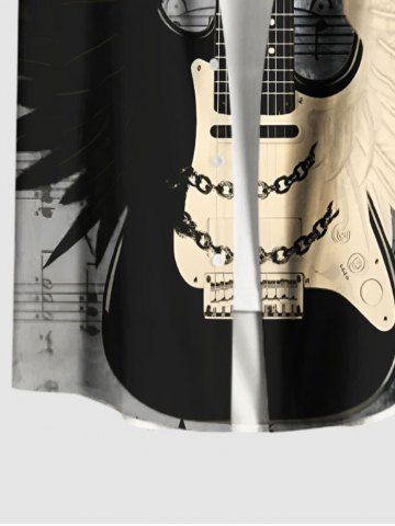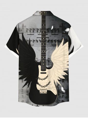Chemise Imprimé Notes de Musique et Ailes de Musique avec Poche Grande Taille pour Hommes - Noir - Noir