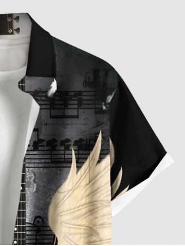 Chemise à Manches Courts> Chemise Imprimé Notes de Musique et Ailes de Musique avec Poche Grande Taille pour Hommes