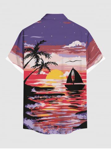 Chemise à Manches Courts > Chemise Imprimé Nuage et Soleil Coloré Grande Taille avec Poches à Rabat
