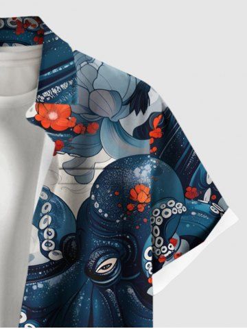 Chemise Imprimé Nuage Floral Grande Taille avec Poches à Boutons pour Homme - Bleu - Bleu