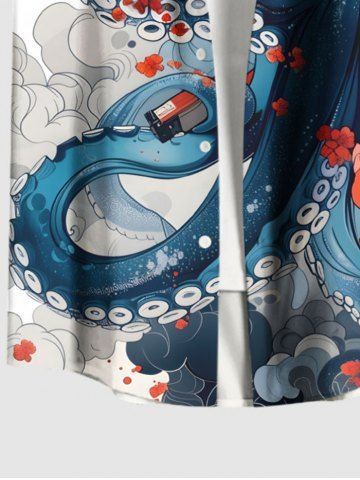Chemise à Manches Courts> Chemise Imprimé Nuage Floral Grande Taille avec Poches à Boutons pour Homme