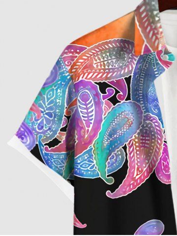 Chemise à Manches Courts> Chemise Imprimé Paisley Coloré Grande Taille avec Poche à Boutons pour Homme