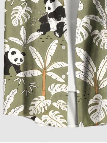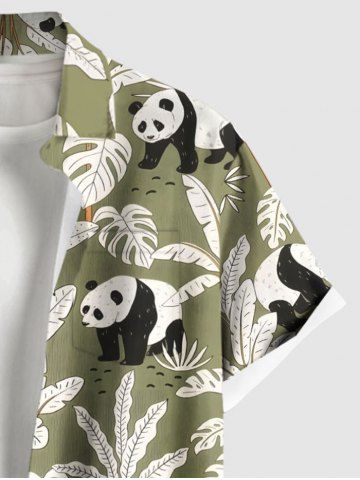 Chemise Imprimé Panda et Feuilles Tropical à Boutons Grande Taille avec Poche pour Homme - Vert Clair - Vert Clair