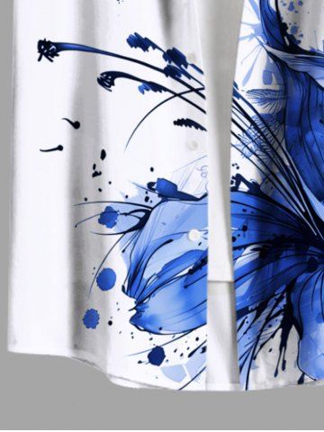 Chemise Imprimé Peinture Éclaboussée à Fleurs avec Poches Grande Taille pour Homme - Blanc - Blanc