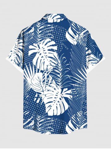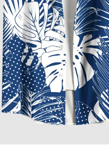 Chemise Imprimé Pois à Feuilles Tropicales à Poches Grande Taille pour Homme - Bleu - Bleu