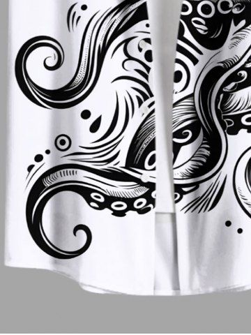 Chemise Imprimé Poulpe à Deux Tons à Poche Grande Taille pour Homme - Blanc - Blanc