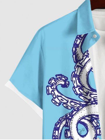 Chemise Imprimé Poulpe à Poche Grande Taille pour Homme - Bleu Ciel - Bleu Ciel