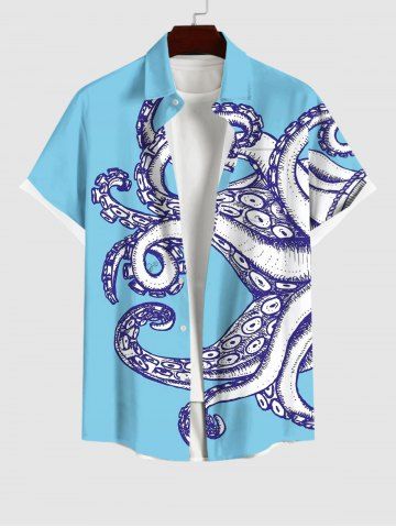 Chemise à Manches Courts > Chemise Imprimé Poulpe à Poche Grande Taille pour Homme