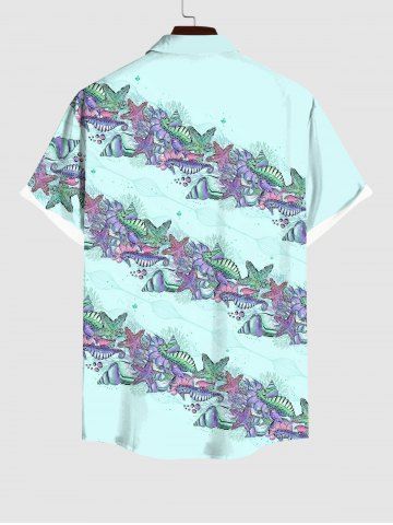 Chemise Imprimé Vie Marine à Boutons Grande Taille avec Poche pour Homme - Bleu Clair - Bleu Clair