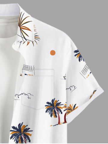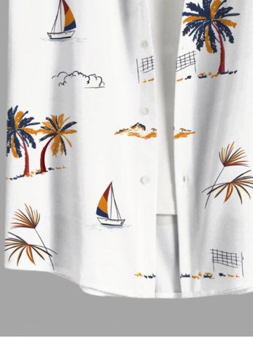 Chemise Imprimé Voilier et Cocotier à Boutons Grande Taille avec Poche pour Homme - Blanc - Blanc