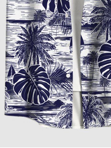 Chemise Imprimé Voilier et Feuille de Palmier Hawaiien à Boutons Grande Taille avec Poche - Multi-a - Xl