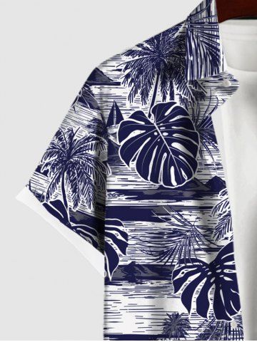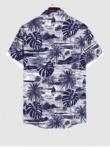 Chemise Imprimé Voilier et Feuille de Palmier Hawaiien à Boutons Grande Taille avec Poche - Multi-a - 2xl
