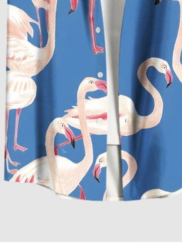 Chemise Imprimée Flammant à Poches Grande Taille pour Homme - Bleu Ciel - Bleu Ciel