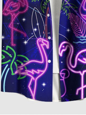 Chemise à Manches Courts> Chemise Jus de Flamant et Ananas Imprimés de Grande Taille avec Poche en Avant