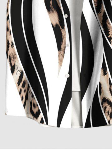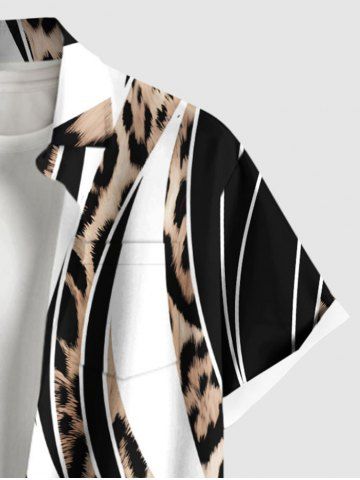 Chemise à Manches Courts > Chemise Léopard Imprimé Boutonnée en Blocs de Couleurs Grande Taille avec Poche