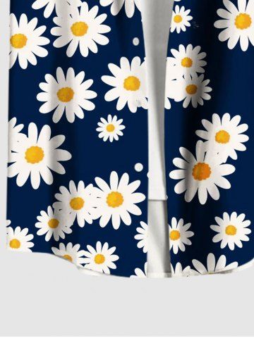 Chemise à Manches Courts > Chemise Marguerite Fleur Imprimée de Grande Taille avec Poche Boutonnée pour Homme