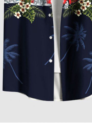 Chemise Motif Arbre de Noix de Coco et Fleurs Tropicales avec Poche Grande Taille pour Hommes - Bleu Profond - L
