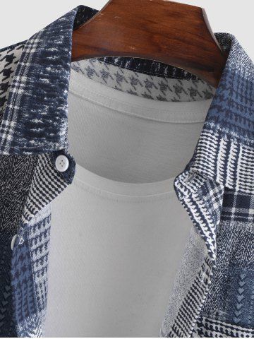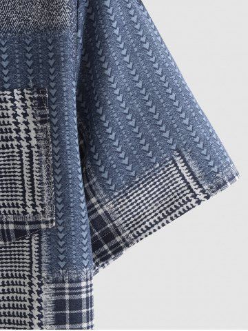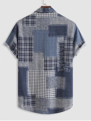 Chemise Motif de Cœur Carreaux à Grille en Blocs de Couleurs à Manches Courtes - Bleu Profond - S