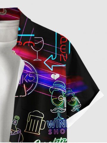 Chemise à Manches Courts> Chemise Néon Lettre et Jus de Fruit de Bière Imprimés de Grande Taille avec Poche pour Homme