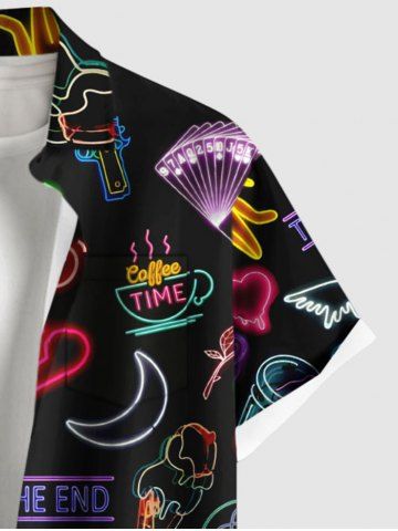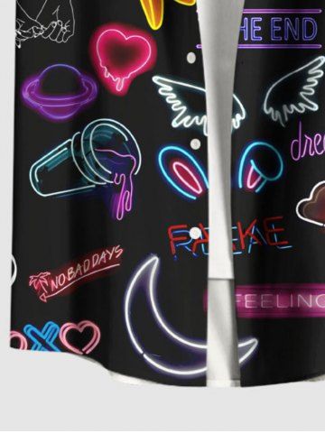 Chemise Néon Lune Cœur Flamant Imprimés de Grande Taille avec Poche en Forme de Nuage - Noir - Noir