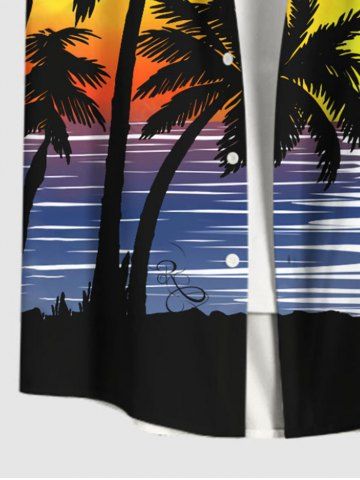 Chemise Ombre à Boutons avec Poche Imprimé Cocotiers et Ciel Grande Taille pour Homme - Multi-a - L